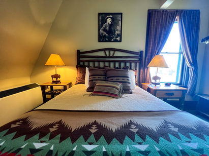 (The Ned Buntline room is a suite that features 1 Queen Size bed, a single lavatory, & a shower. All rooms have wired and wireless internet & individual heat/ac. Facing East towards the Railroad Tracks and Broadway)